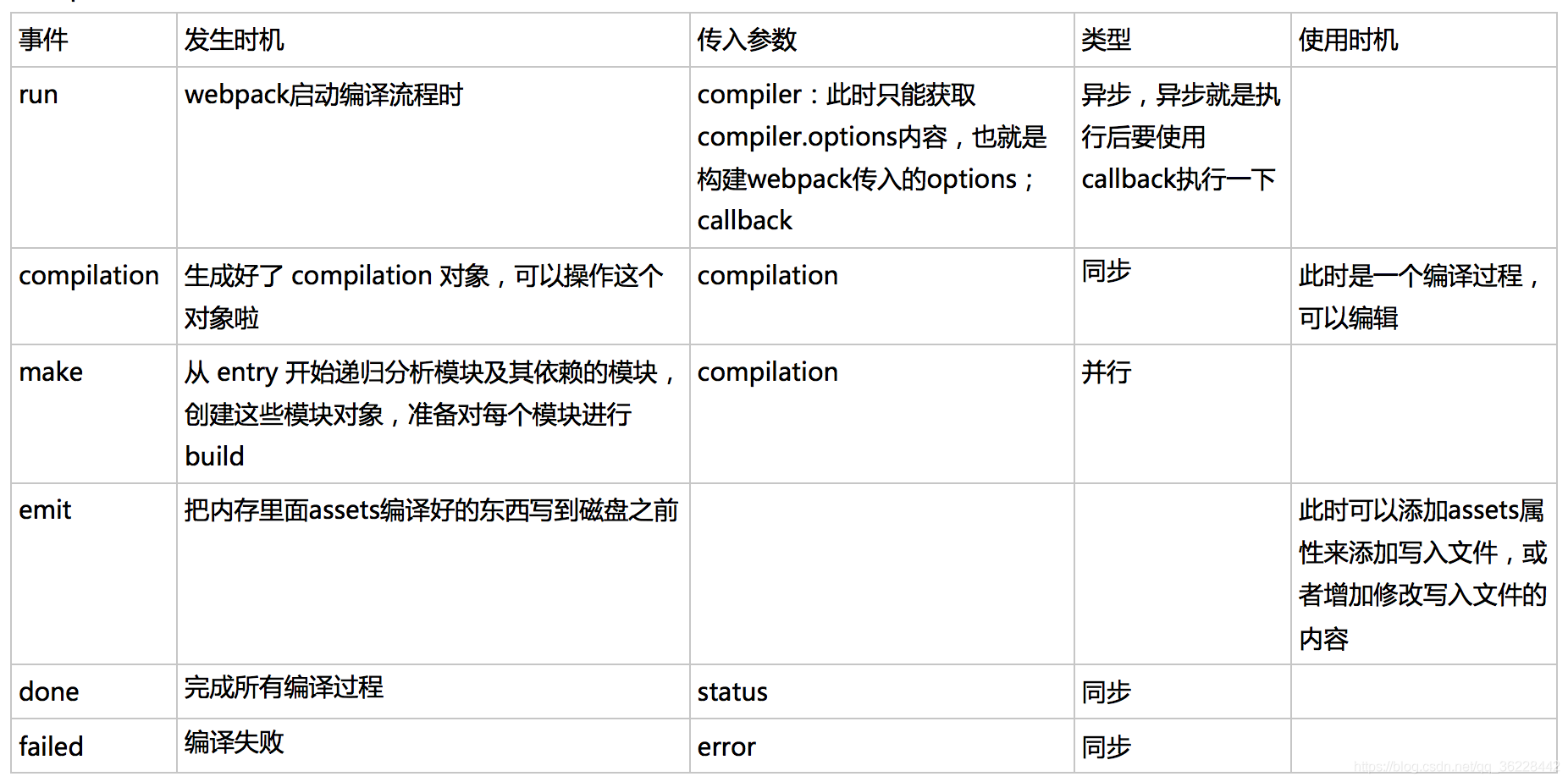 - 4、针对webpack的打包过程,他不直接操作文件,而是基于事件机制工作,会监听webpack打包过程的事件钩子,执行任务,通过事件钩子拦截webpack的执行。